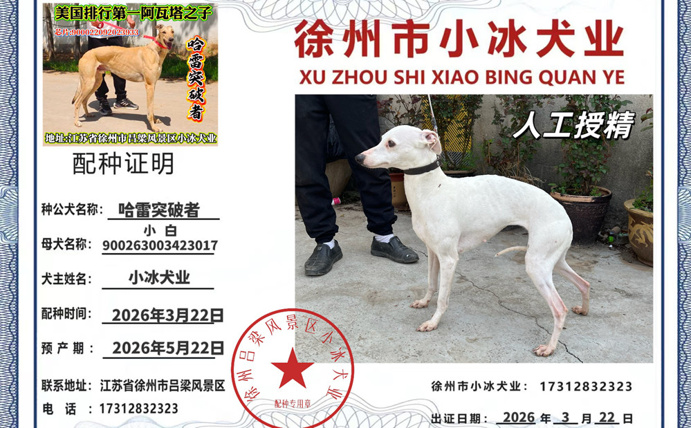2026年3月22日徐州小冰的惠比特种母小白使用徐州小冰的格力犬种公哈雷突破者人工授精