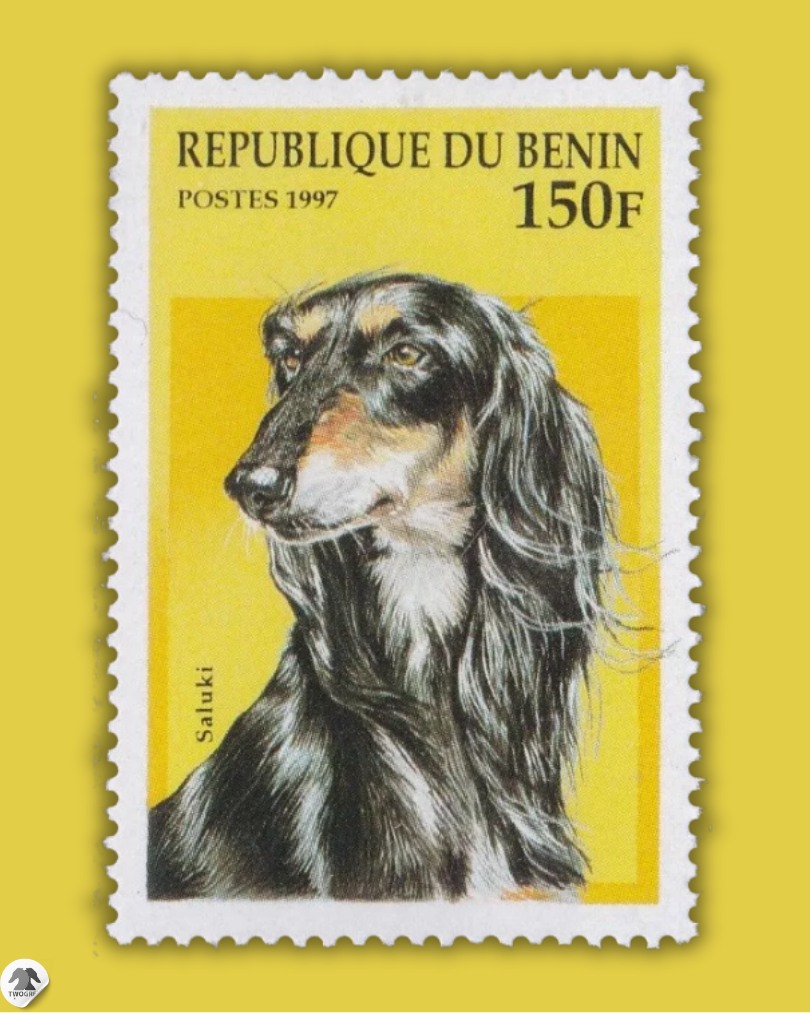 这是一枚 1997 年贝宁共和国发行的邮票,面值为 150 非洲法郎(150F) 邮票主体是一只萨路基犬(Saluki)的肖像画 文章导航 简讯:Bel Etual Arabeska(中文名简称阿拉贝丝卡)赢得2026萨巴涅夫纪念犬展老年组全场冠军两幅欧洲14世纪的视觉系猎犬画