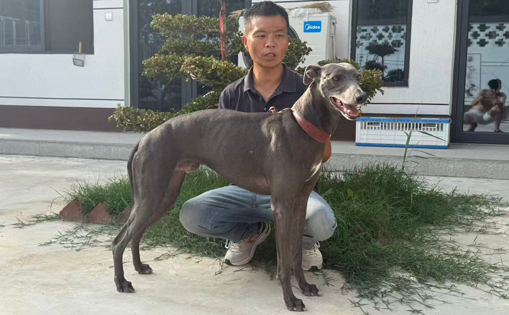 青大头,公犬,是格力犬与惠比特的混血犬,后落户济宁刚子犬舍