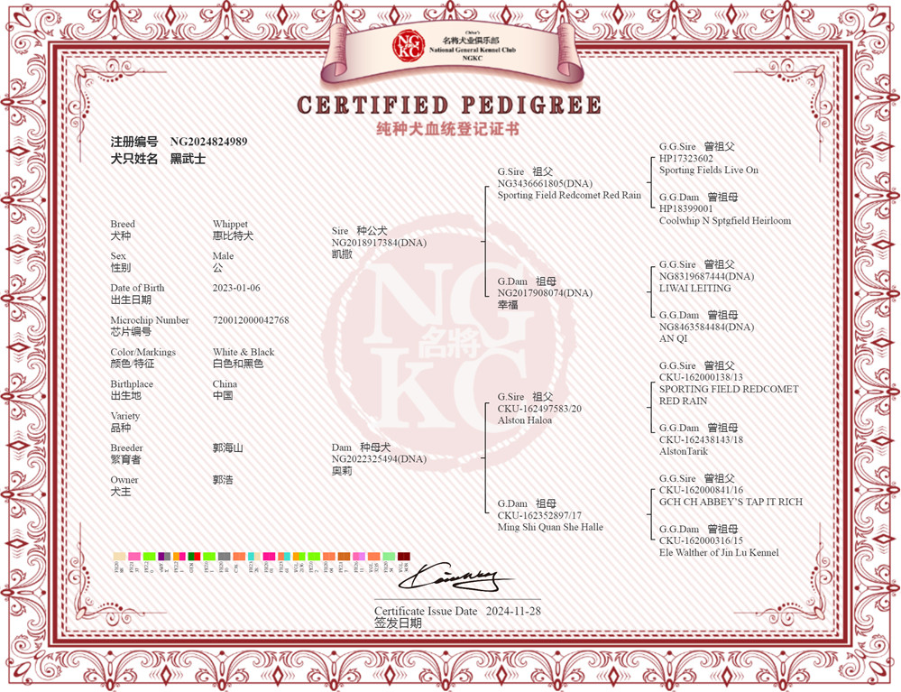 NGKC注册惠比特,公犬,2023年1月6日出生于郭海山处,后落户内乡郭浩处