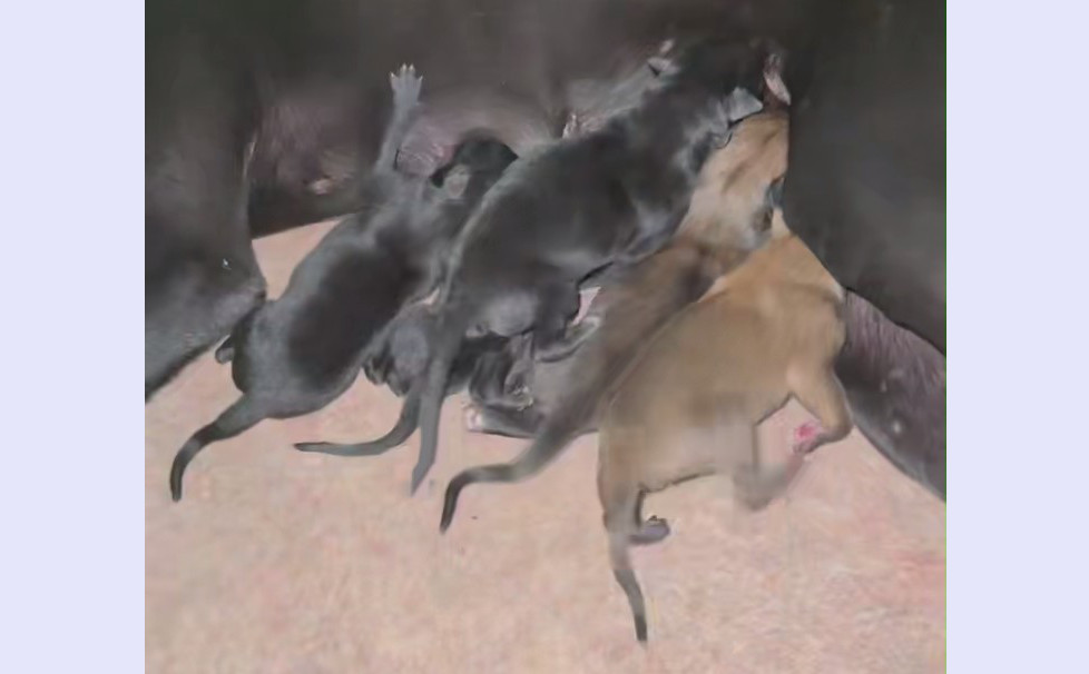 2025年10月1日聊城马果胜的混血犬种母财豹使用聊城马果胜的格力犬种公黑鸽相亲,并于2025年12月产下5条,3公2母