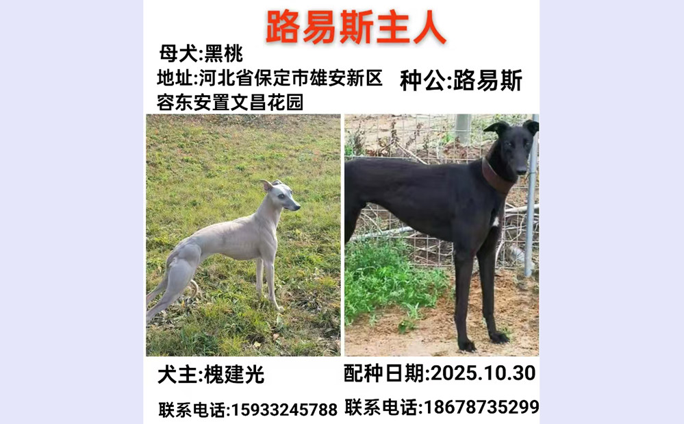 2025年10月30日雄安槐建光的混血犬种母黑桃使用YY注册格力犬种公路易斯 900128001208011配种